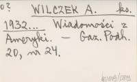 WILCZEK A. ks. 1932... Wiadomości z Ameryki.
