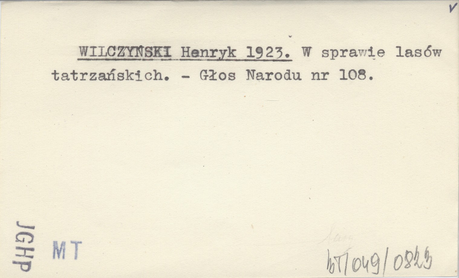 WILCZYŃSKI Henryk 1923 W sprawie lasów tatrzańskich.