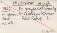 WILCZYŃSKI Henryk 1926 Do przyjaciół prawdy w sprawie Zakładów Kórnickich.