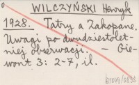 WILCZYŃSKI Henryk 1928 Tatry a Zakopane. Uwagi po dwudziestoletniej obserwacji.