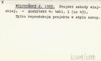 WILCZYŃSKI J. 1903 Projekt szkoły wiejskiej.