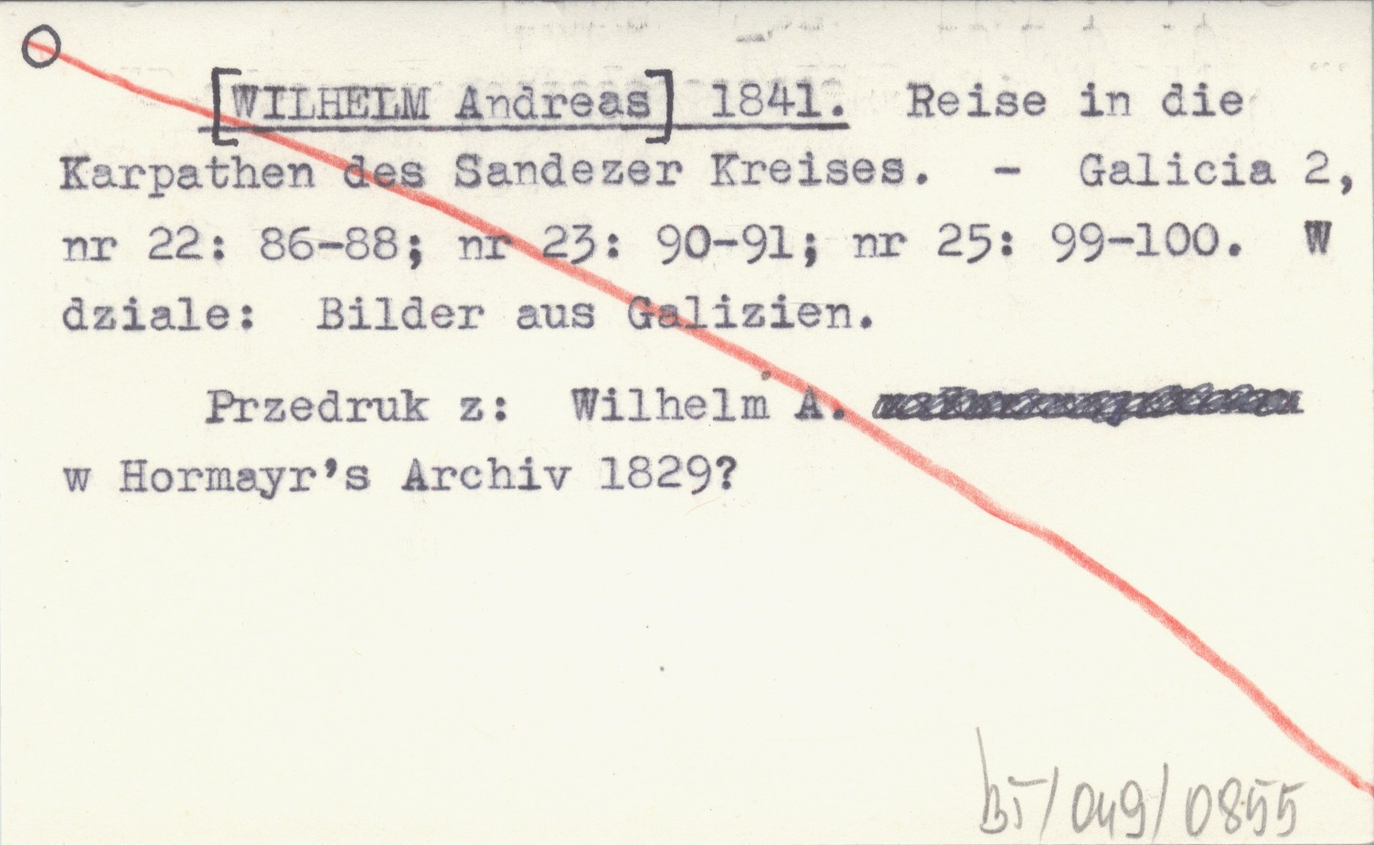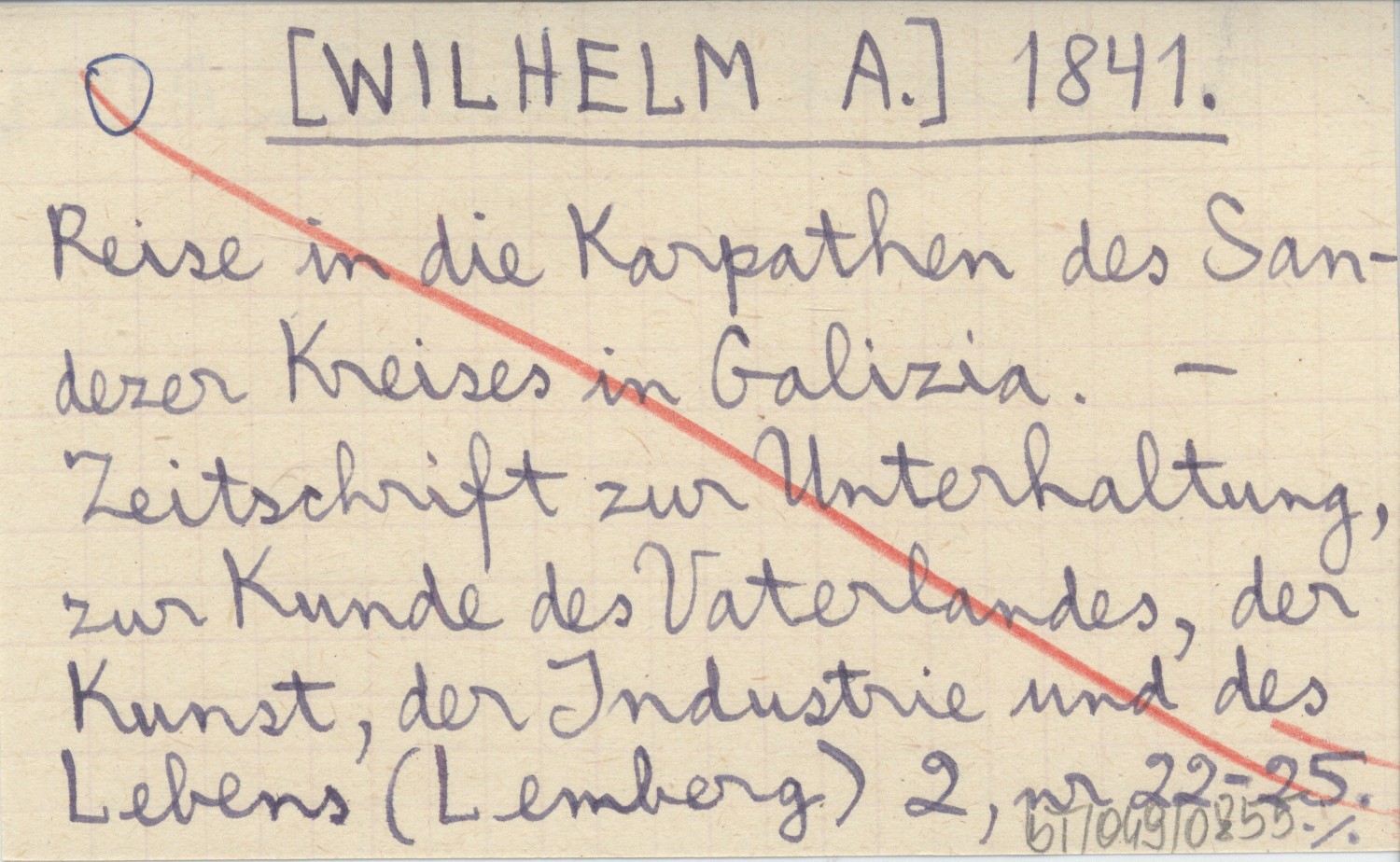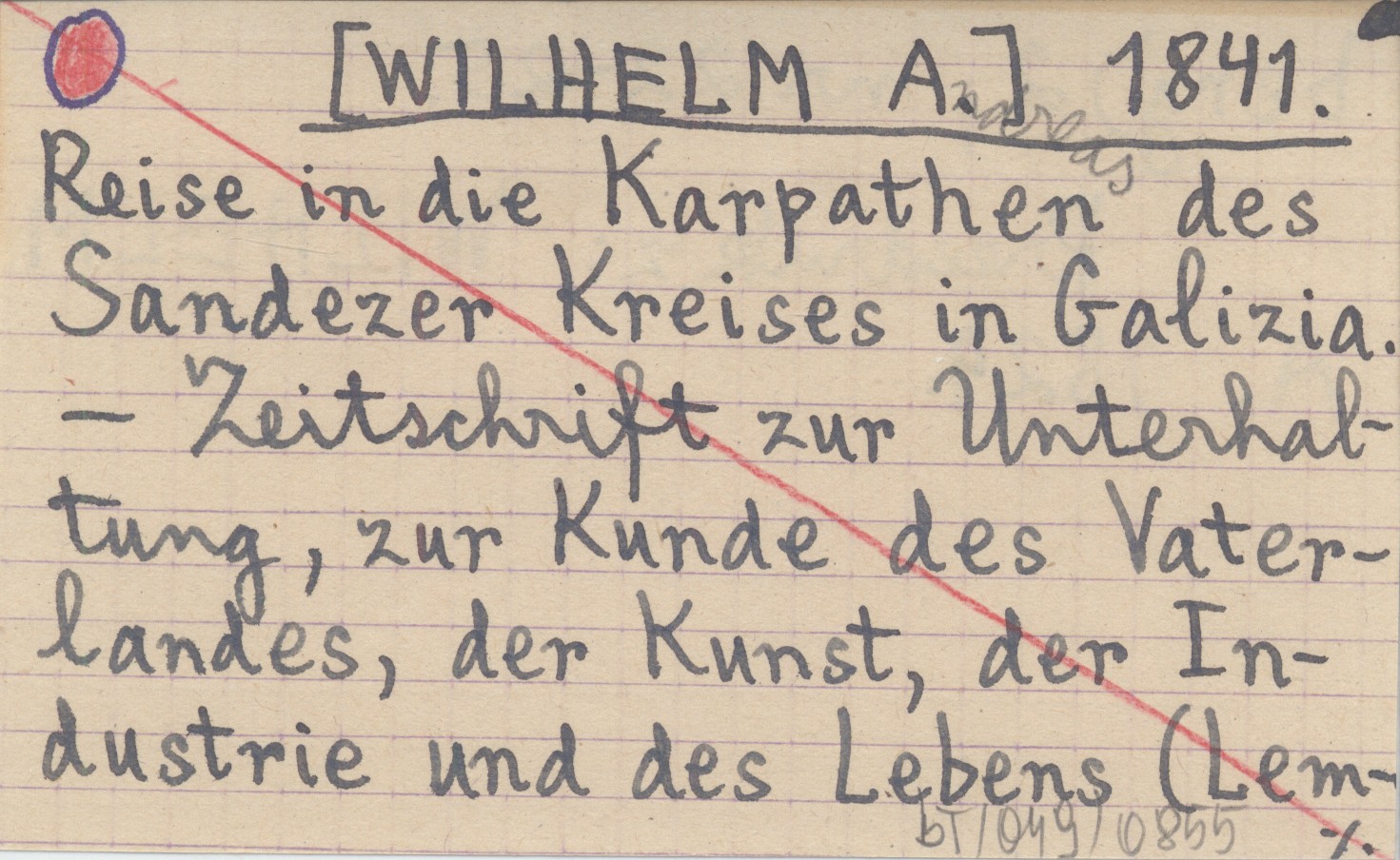 [WILHELM Andreas] 1841 Reise in die Karpathen des Sandezer Kreises in Galizia.