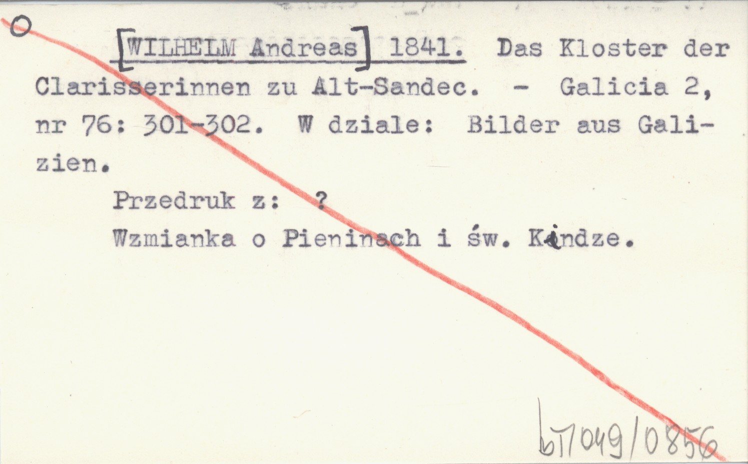 [WILHELM Andreas] 1841 Das Kloster der Clarisserinnen zu Alt-Sandec.
