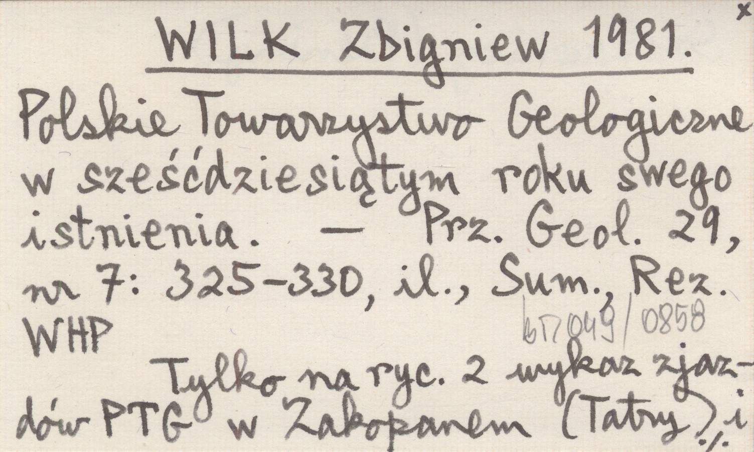 WILK Zbigniew 1981 Polskie Towarzystwo Geologiczne w sześćdziesiątym roku swego istnienia.