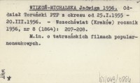 WILKOŃ-MICHALSKA Jadwiga 1956 Oddział Toruński PTP z okresu od 25.I.1955 - 20.III.1956.