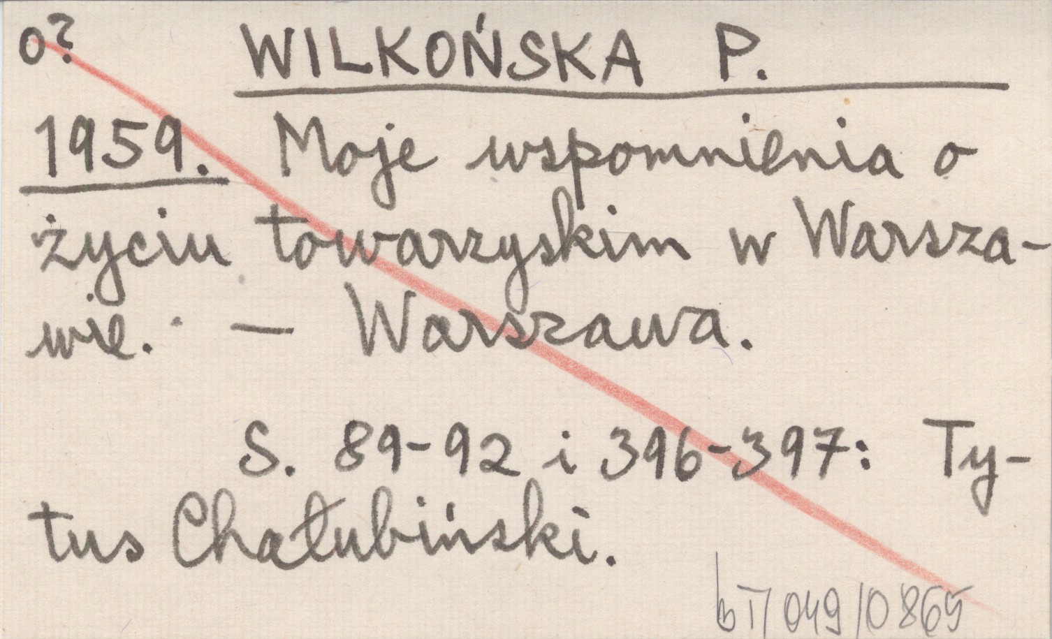 WILKOŃSKA P. 1959 Moje wspomnienia o życiu towarzyskim w Warszawie.