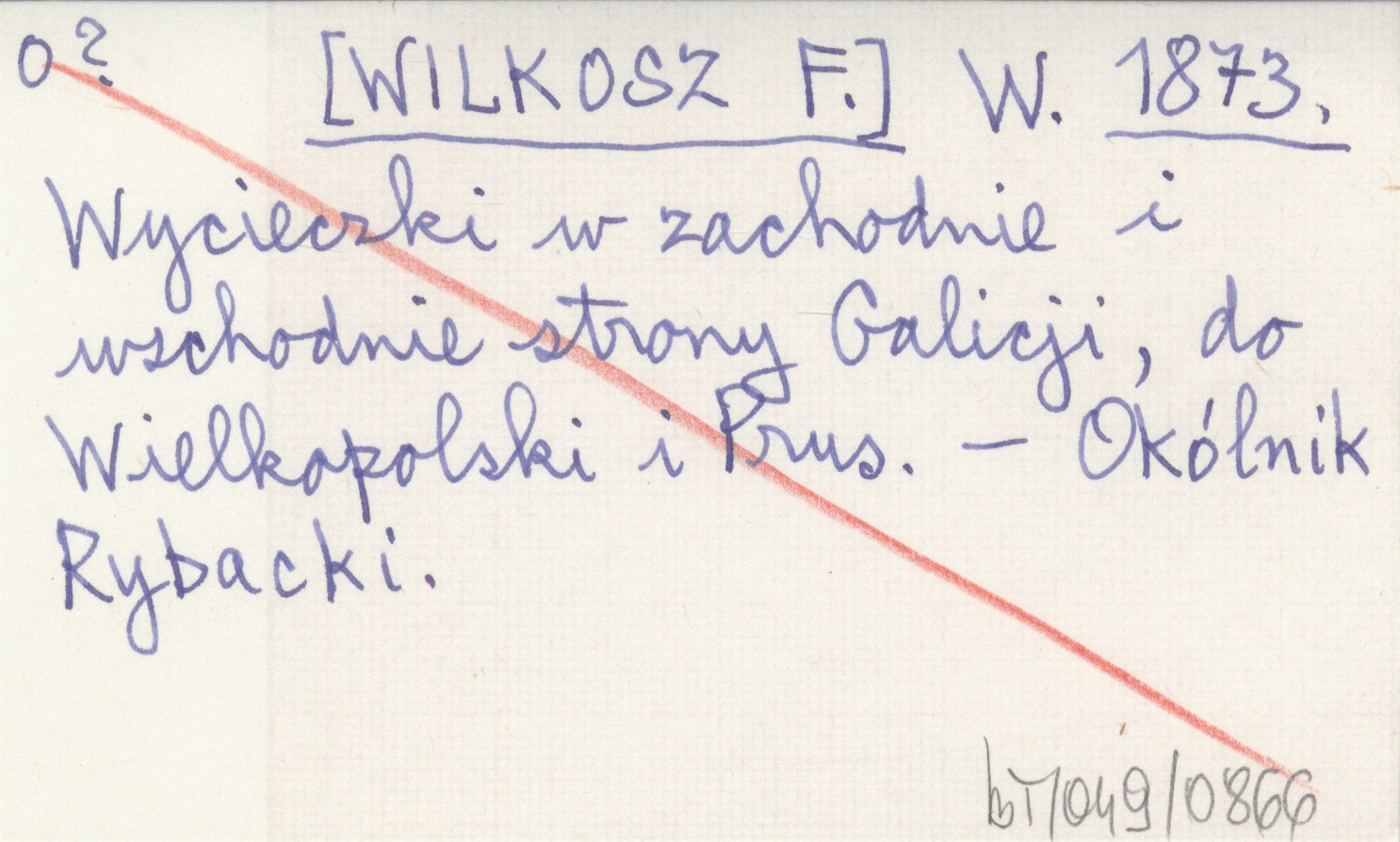W. [WILKOSZ F.] 1873 Wycieczki w zachodnie i wschodnie strony Galicji, do Wielkopolski i Prus.