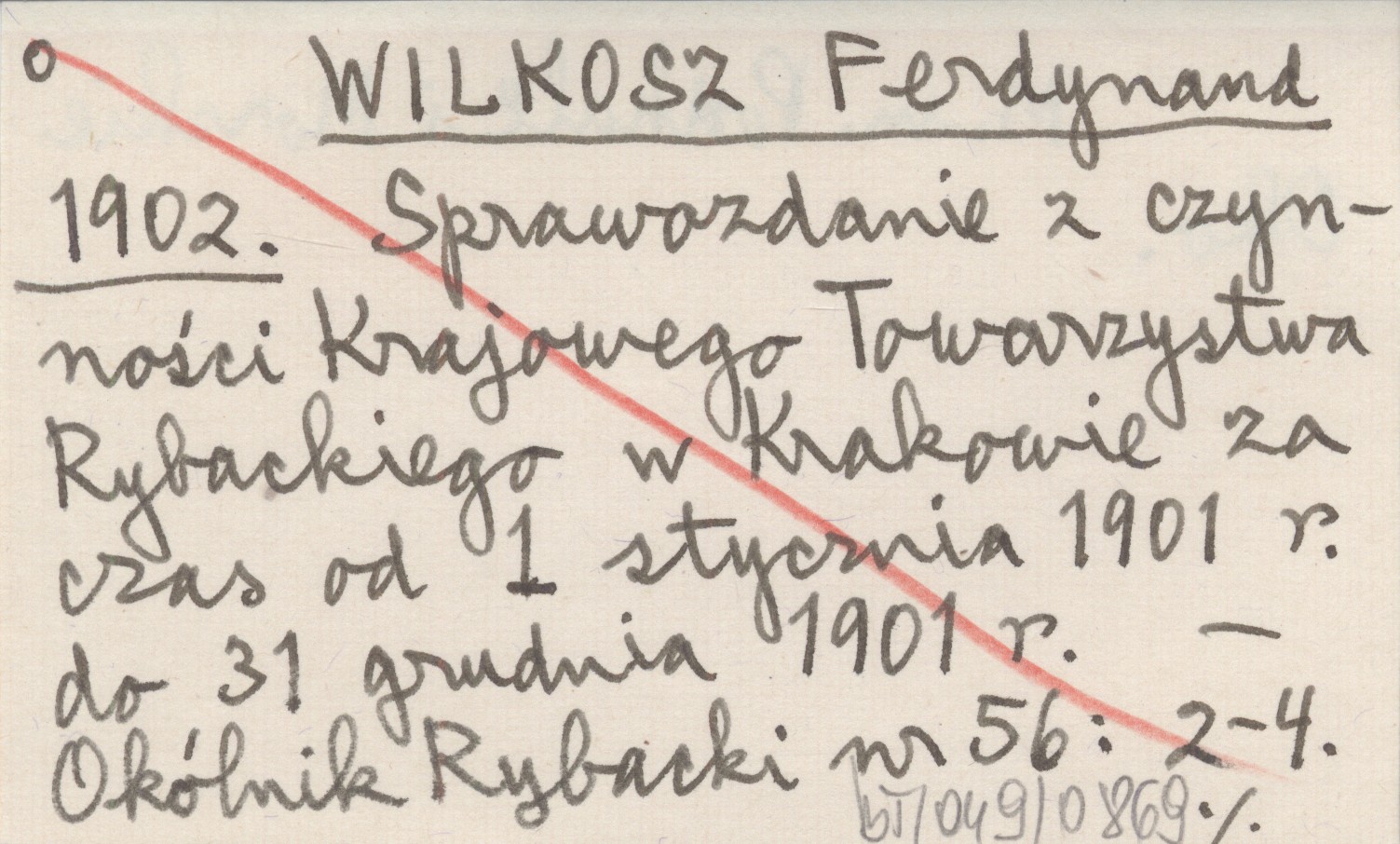 WILKOSZ Ferdynand 1902 Sprawozdanie z czynności Krajowego Towarzystwa Rybackiego w Krakowie za czas od 1 stycznia 1901 r. do 31 grudnia 1901 r.