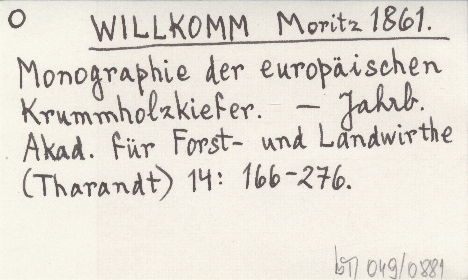 WILLKOMM Moritz 1861 Monographie der europäischen Krummholzkiefer.