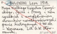 BULOWSKI Leon 1919 Mapa Wielkiego Księstwa Cieszyńskiego, Spiżu i Orawy i ziem sąsiednich z uwzględnieniem stosunków narodowościowych i granic historycznych. 1:400 000.