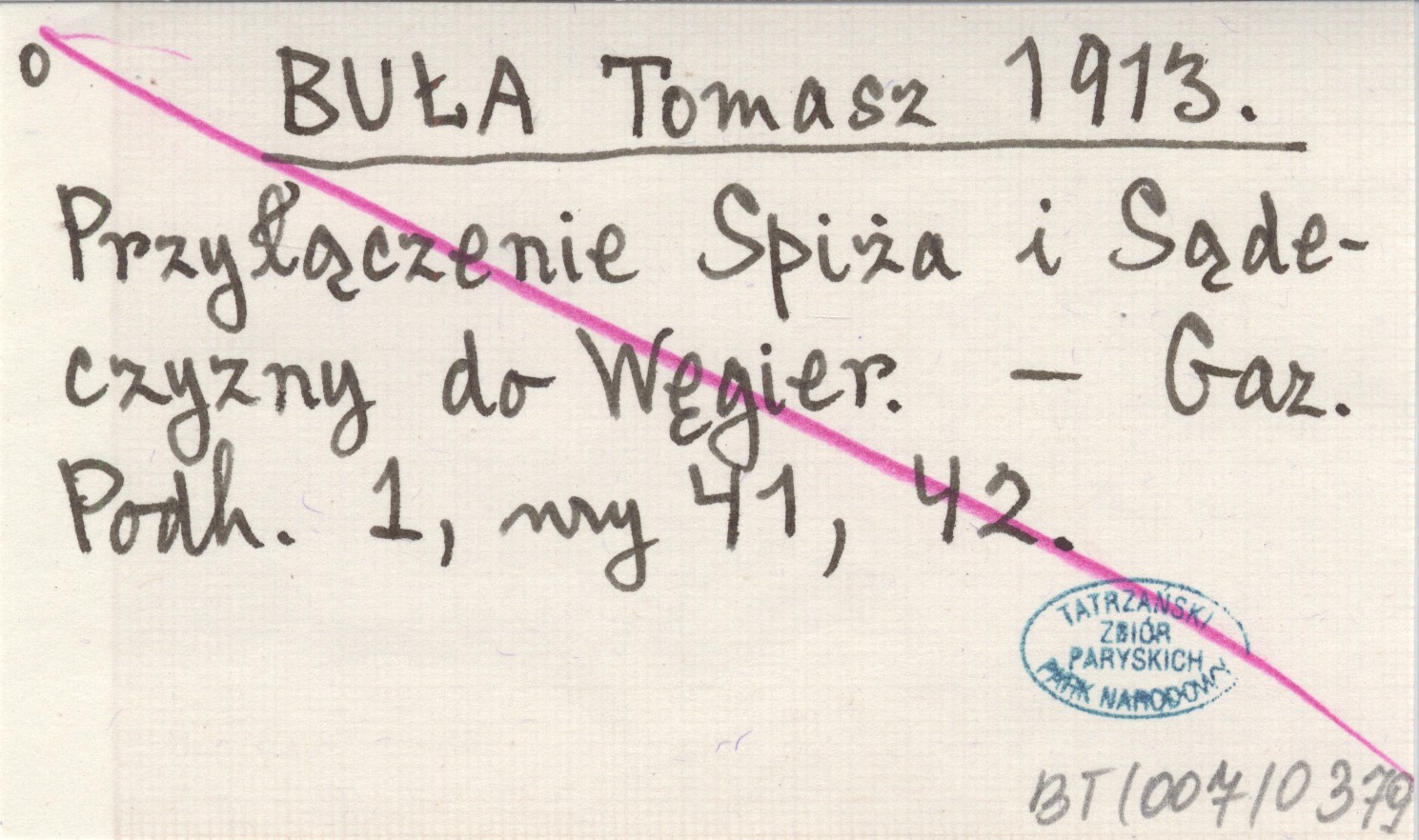 BUŁA Tomasz 1913 Przyłączenie Spiża i Sądeczyzny do Węgier.