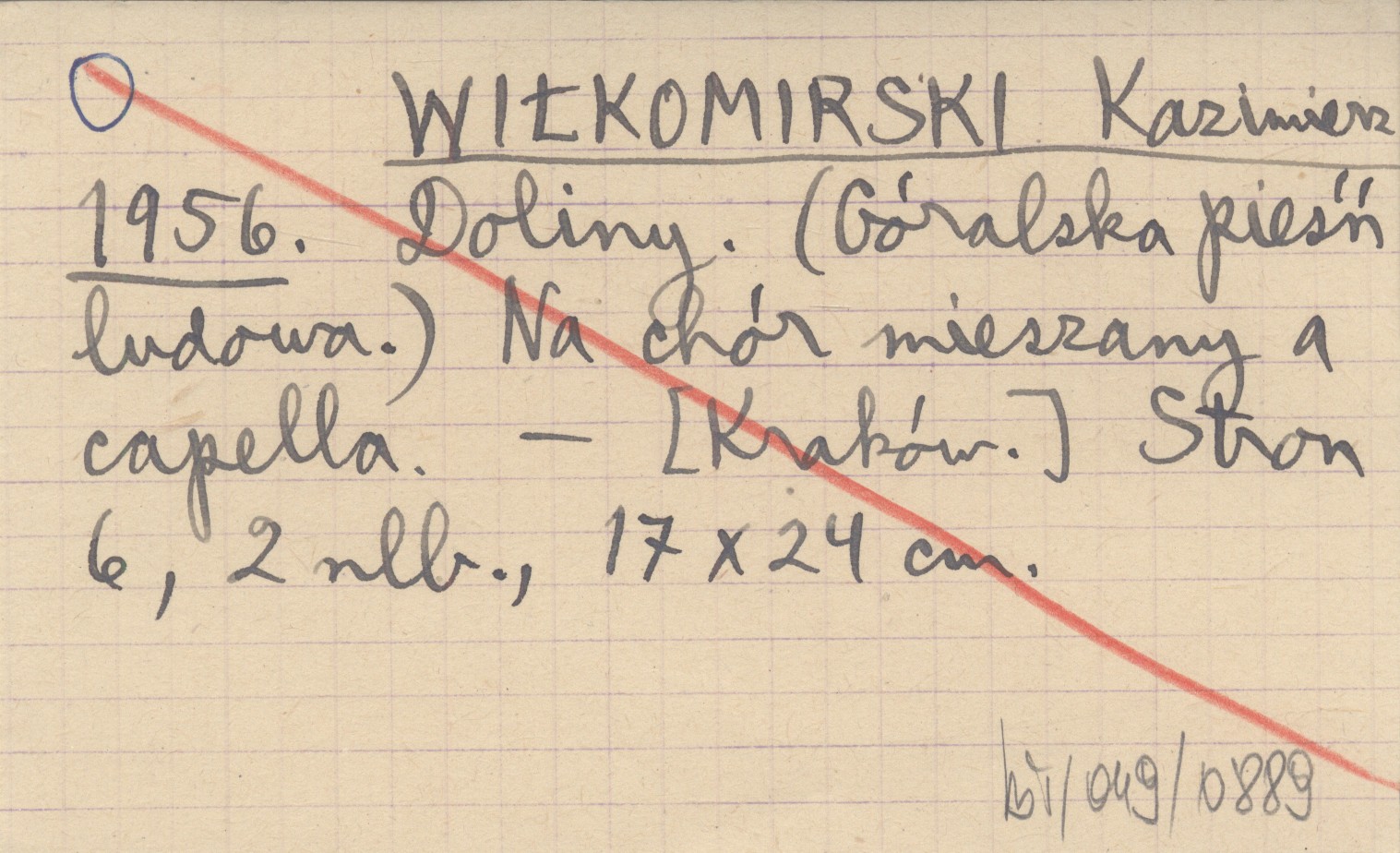 WIŁKOMIRSKI Kazimierz 1956 Doliny. (Góralska pieśń ludowa.) Na chór mieszany a capella.