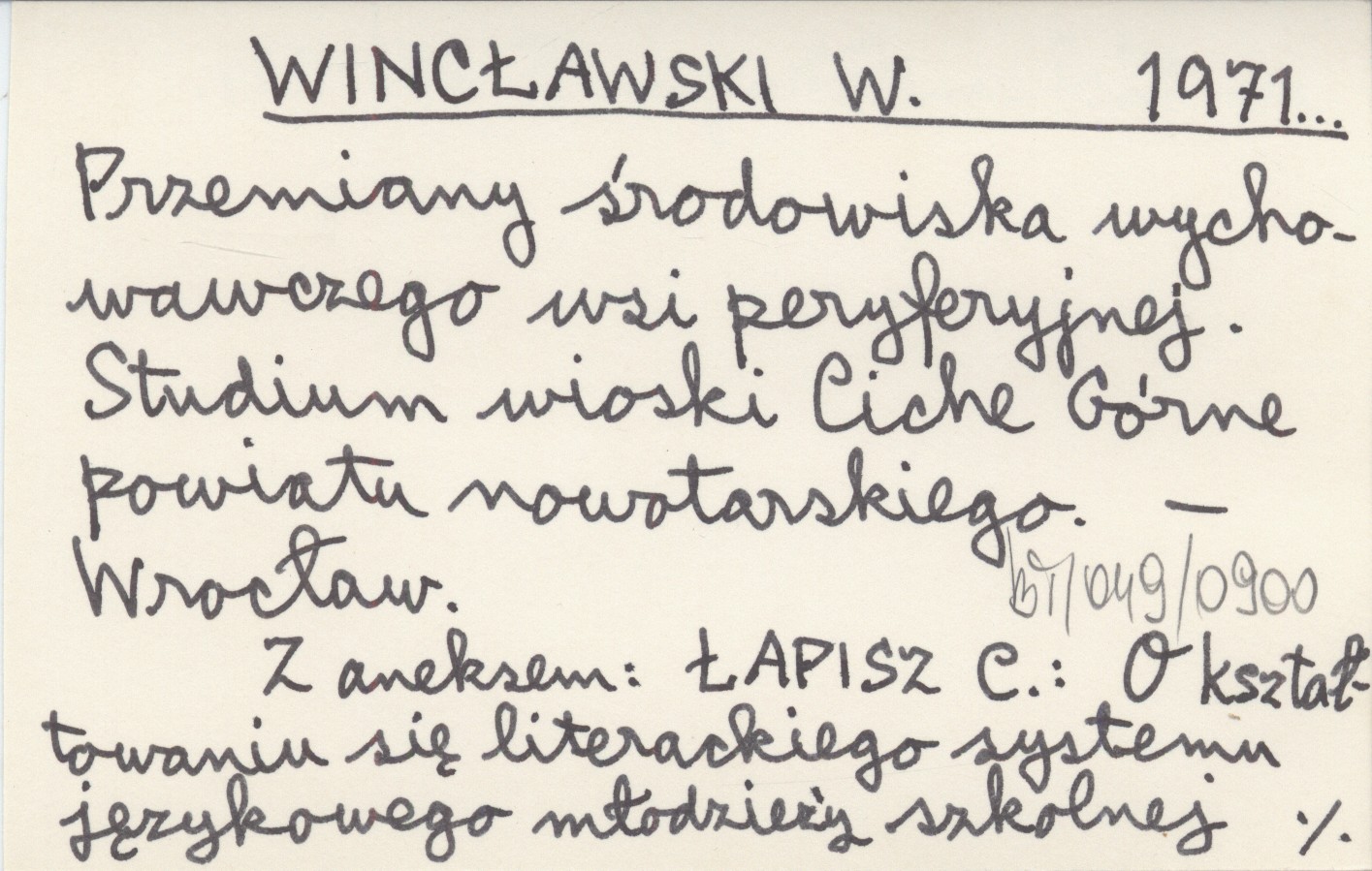 WINCŁAWSKI W. 1971... Przemiany środowiska wychowawczego wsi peryferyjnej. Studium wioski Ciche Górne powiatu nowotarskiego.