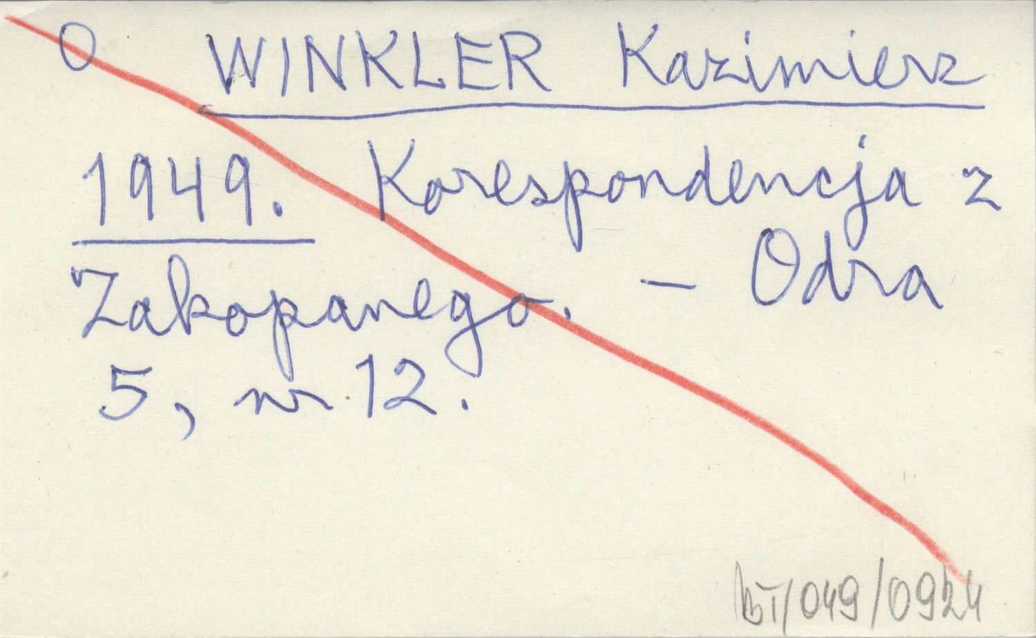 WINKLER Kazimierz 1949 Korespondencja z Zakopanego.