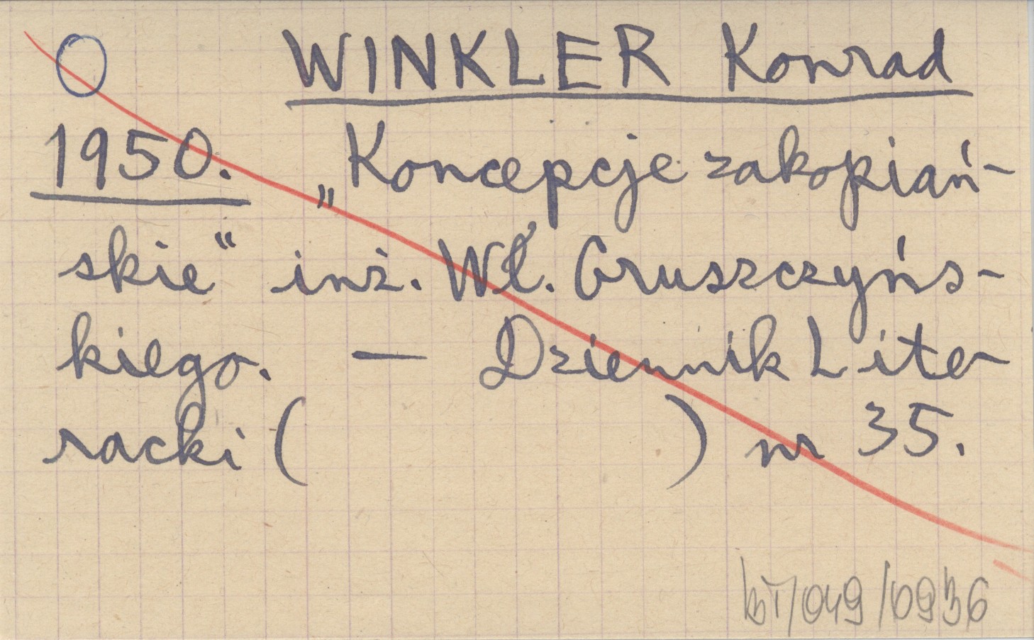 WINKLER Konrad 1950 "Koncepcje zakopiańskie" inż. Wł. Gruszczyńskiego.