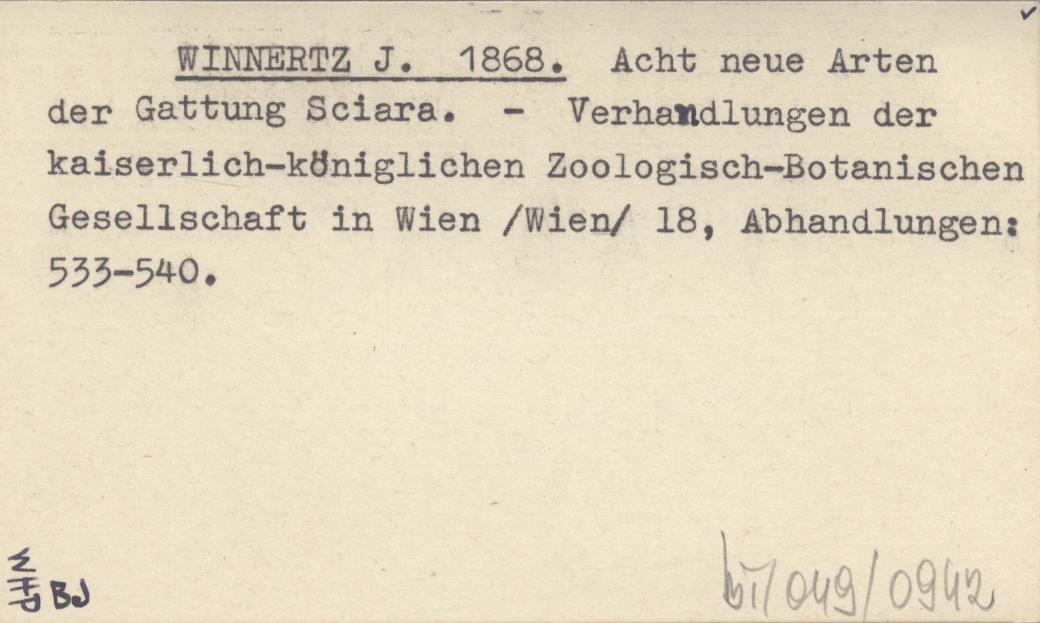 WINNERTZ J. 1868 Acht neue Arten der Gattung Sciara.