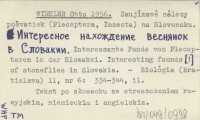 WINKLER Otto 1956 Zaujímavé nálezy pošvatiek (Pleceptera, Insecta) na Slovensku. Interesnoe nachoždenie vecnjanok v Slobakii. Interessante Funde von Plecopteren in der Slowakei. Interesting founds [!] of stoneflies in Slovakia.