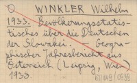 WINKLER Wilhelm 1933 Bevölkerungsstatistisches über die Deutschen der Slowakei.