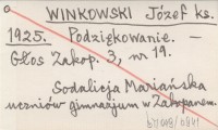 WINKOWSKI Józef ks. 1925 Podziękowanie.