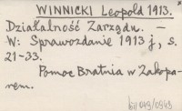 WINNICKI Leopold 1913 Działalność Zarządu.