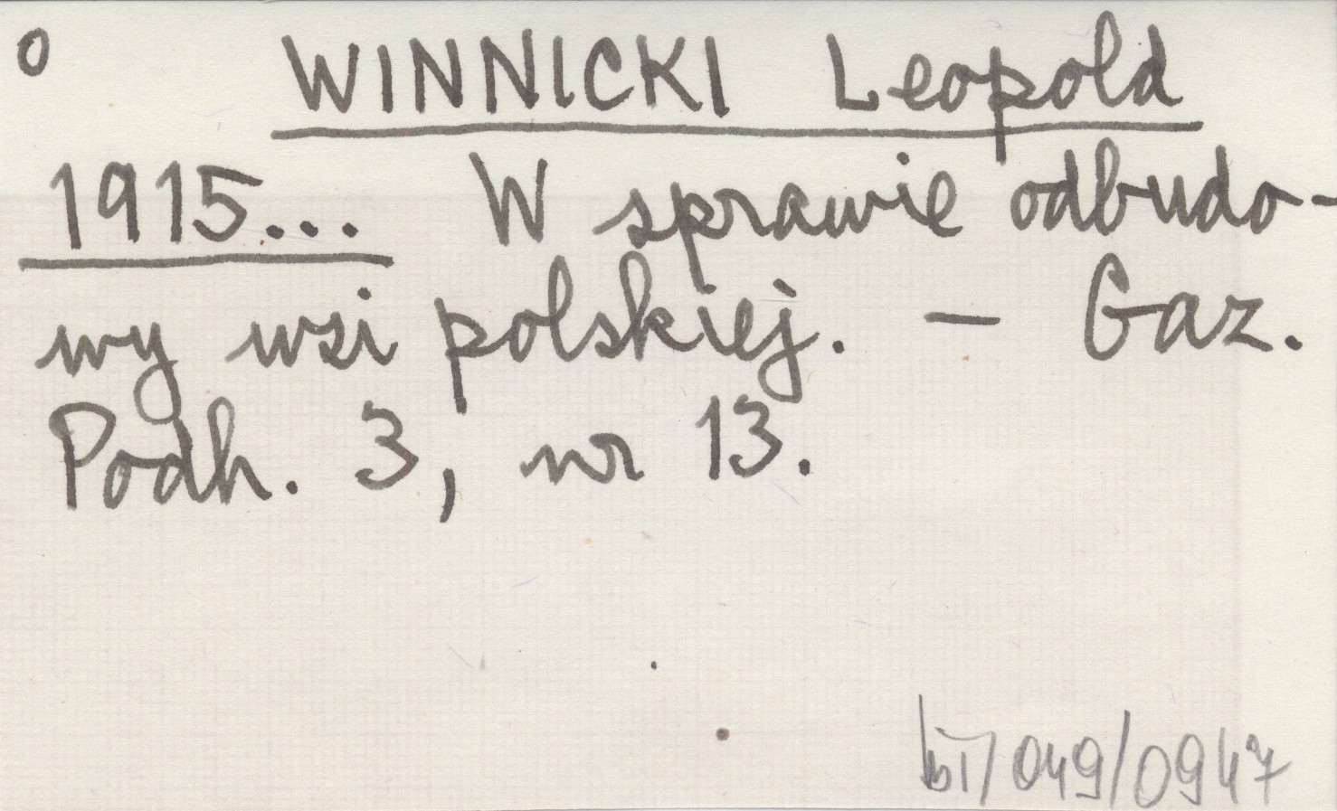 WINNICKI Leopold 1915... W sprawie odbudowy wsi polskiej.