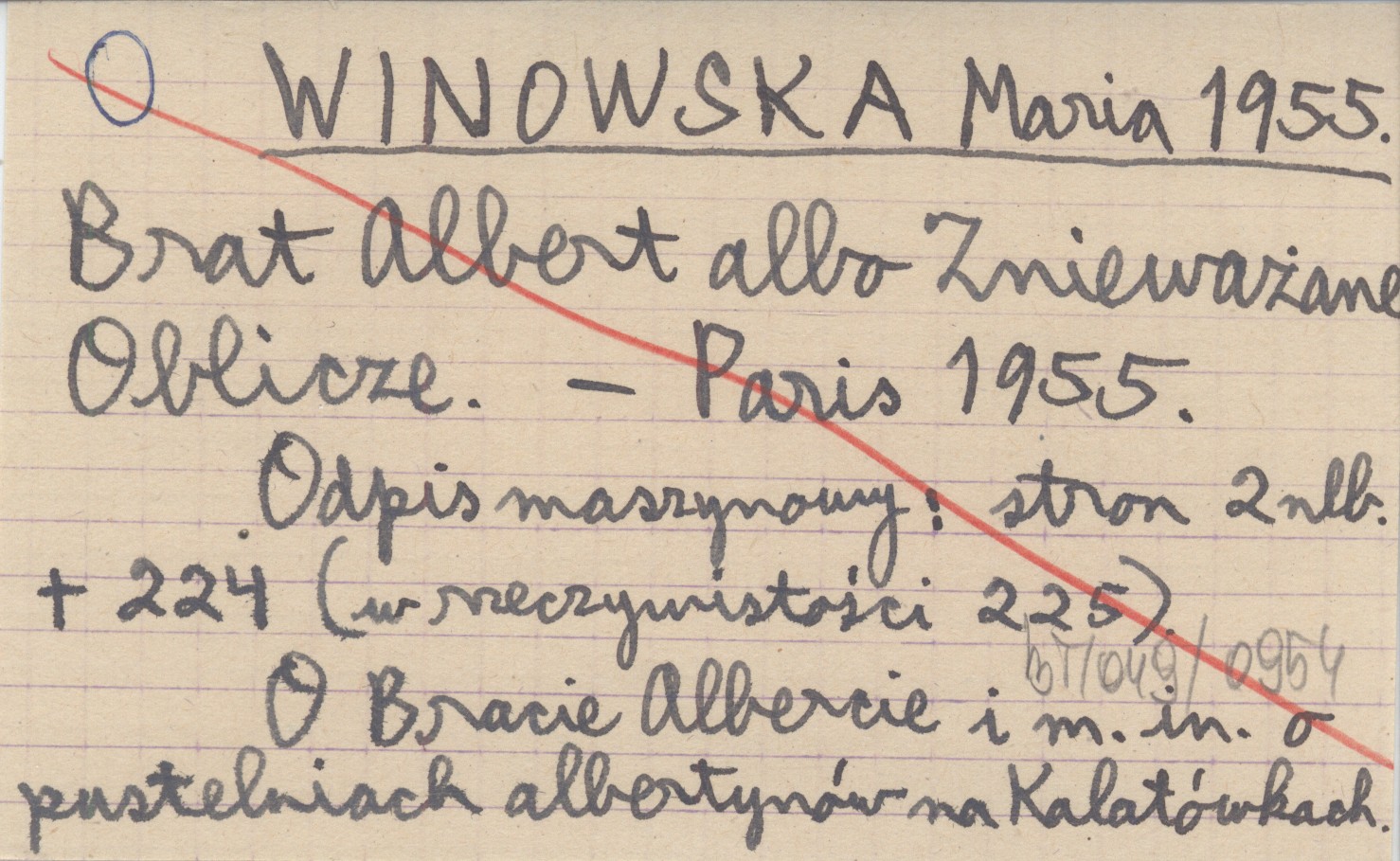 Paris , 225 s., [2] s. O Bracie Albercie i m.in. o pustelniach albertynów na Kalatówkach. Odpis maszynowy: stron [2] + 224 (w rzeczywistości 225).