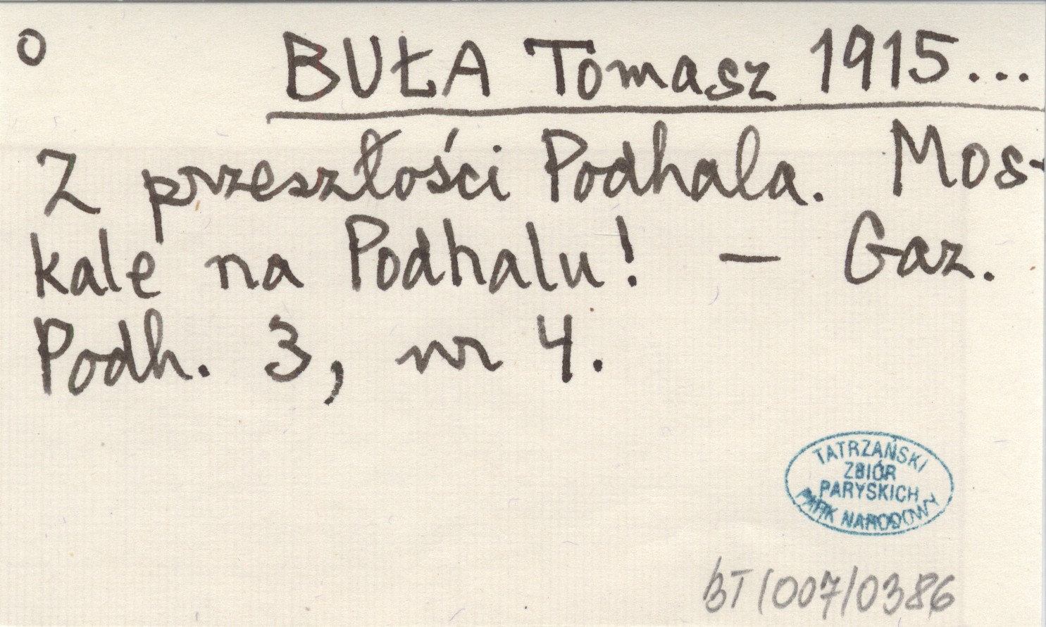 BUŁA Tomasz 1915... Z przeszłości Podhala. Moskale na Podhalu!