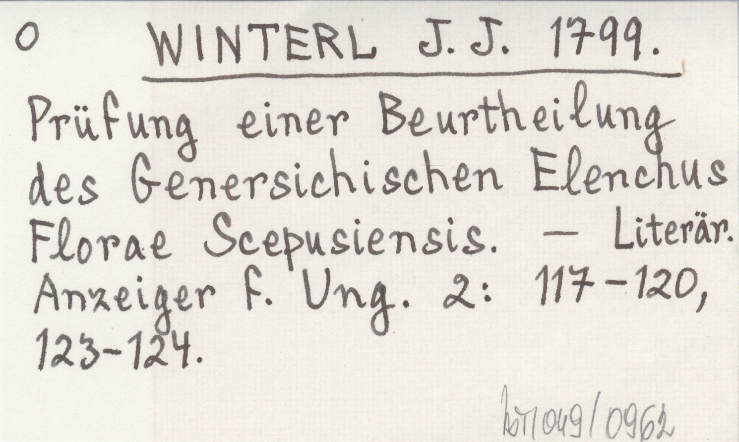 WINTERL J. J. 1799 Prüfung einer Beurtheilung des Genersichischen Elenchus Florae Scepusiensis.