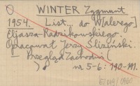 WINTER Zygmunt 1954 List... do W[alerego] Eljasza-Radzikowskiego. Opracował Jerzy Śliziński.