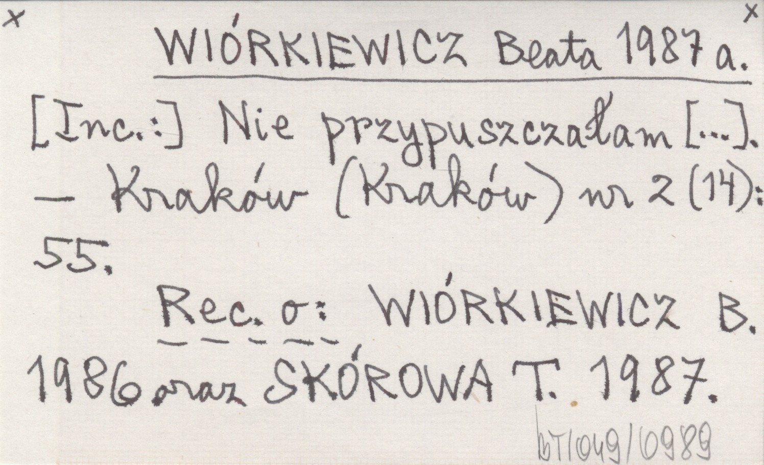 WIÓRKIEWICZ Beata 1987 a Nie przypuszczałam [...].