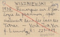 WISZNIEWSKI Jerzy 1938 Remarques sur l'écologie du psammon, spécialement dans les lacs des Tatras.