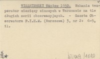 WISZNIEWSKI Wacław 1950 Wahania temperatur miesięcy zimowych w Warszawie na tle długich serii obserwacyjnych.