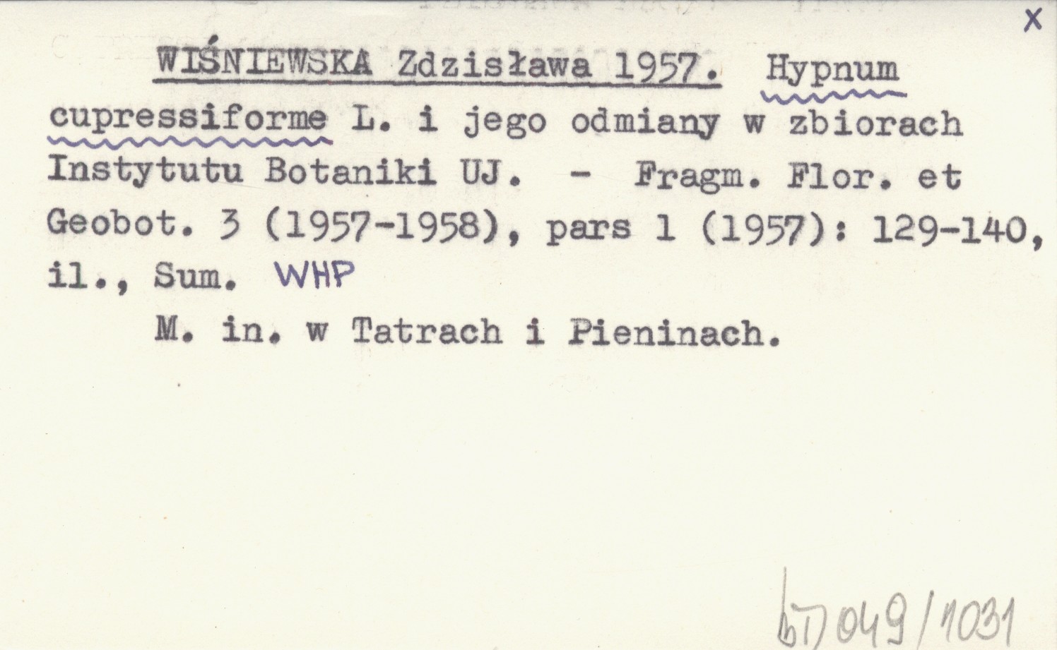 WIŚNIEWSKA Zdzisława 1957 Hypnum cupressiforme L. i jego odmiany w zbiorach Instytutu Botaniki UJ.