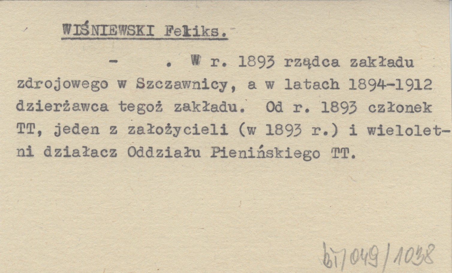 W r. 1893 rządca zakładu zdrojowego w Szczawnicy, a w latach 1894-1912 dzierżawca tegoż zakładu. Od r. 1893 członek TT, jeden z założycieli (w 1893 r.) i wieloletni działacz Oddziału Pienińskiego TT.