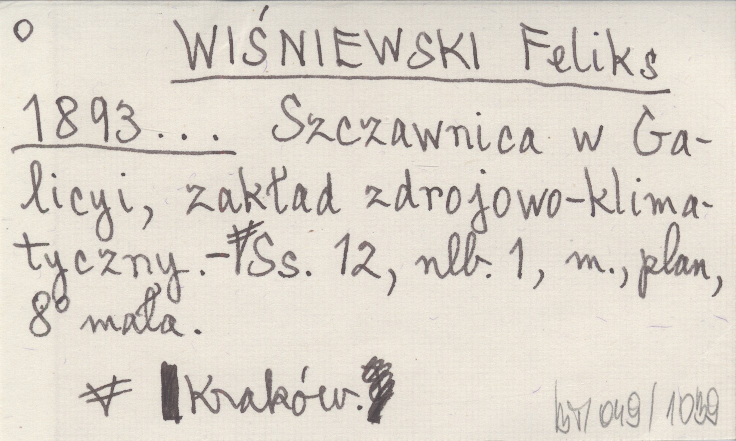 WIŚNIEWSKI Feliks 1893... Szczawnica w Galicyi, zakład zdrojowo-kąpielowy.