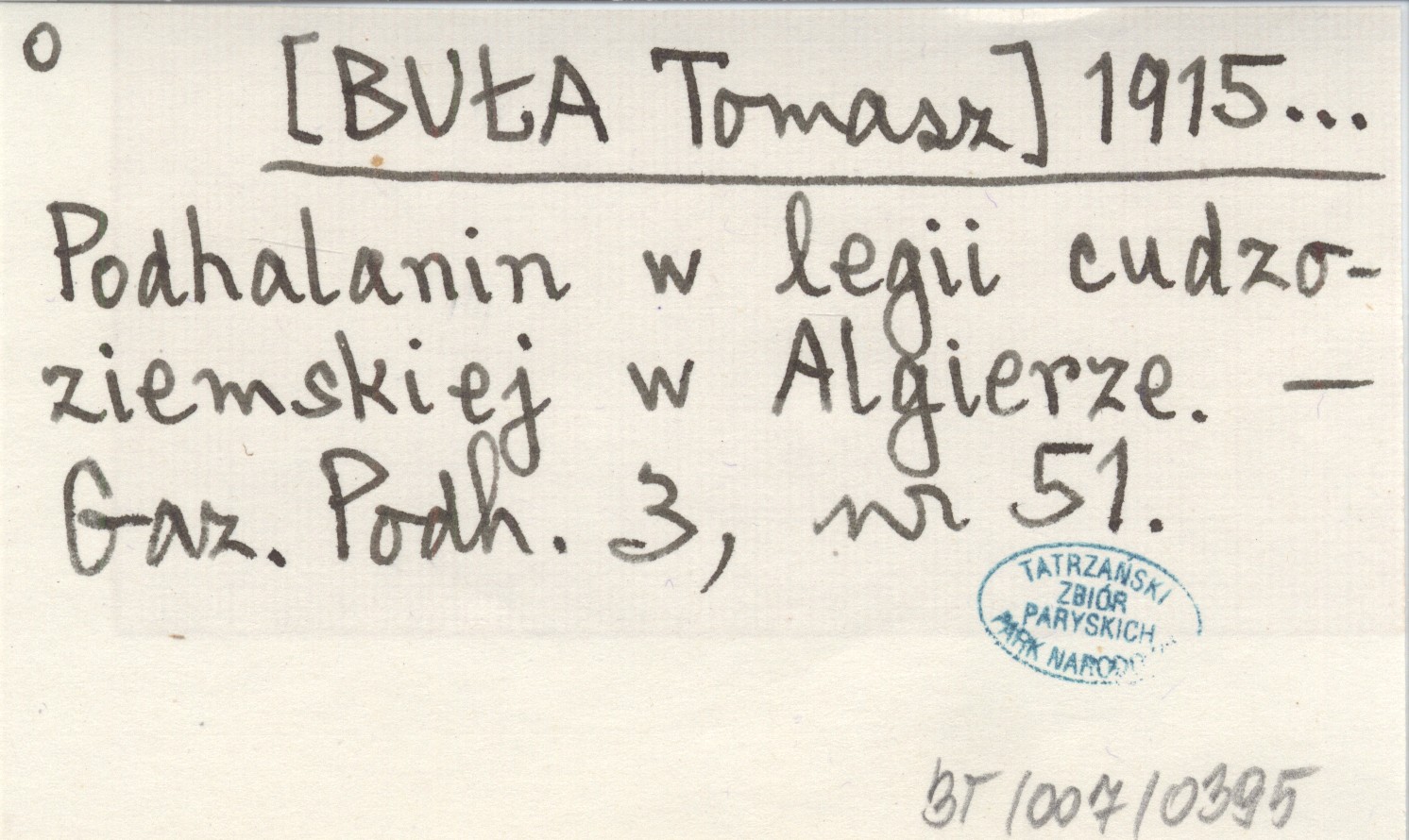 [BUŁA Tomasz] 1915... Podhalanin w legii cudzoziemskiej w Algierze.