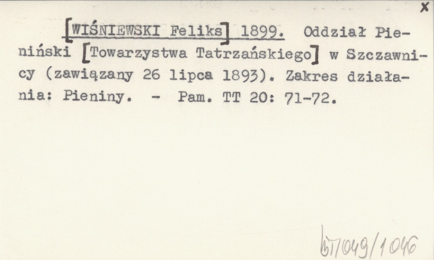 [WIŚNIEWSKI Feliks] 1899 Oddział Pieniński [Towarzystwa Tatrzańskiego] w Szczawnicy (zawiązany 26 lipca 1893). Zakres działania: Pieniny.