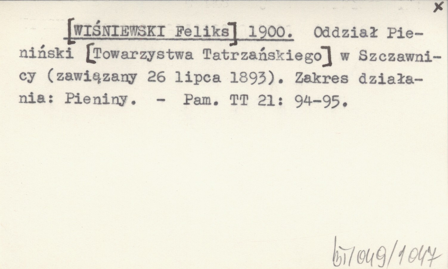 [WIŚNIEWSKI Feliks] 1900 Oddział Pieniński [Towarzystwa Tatrzańskiego] w Szczawnicy (zawiązany 26 lipca 1893). Zakres działania: Pieniny.