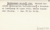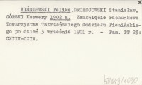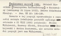 WIŚNIEWSKI Feliks 1902 Oddział Pieniński w Szczawnicy (zawiązany 26 lipca 1893). Zakres działania: Pieniny. Protokół spisany dnia 3 września 1901 z posiedzenia Ogólnego Zebrania członków Tow. Tatrzańskiego, Oddziału Pienińskiego.