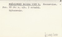 WIŚNIEWSKI Feliks 1903 b Szczawnica.