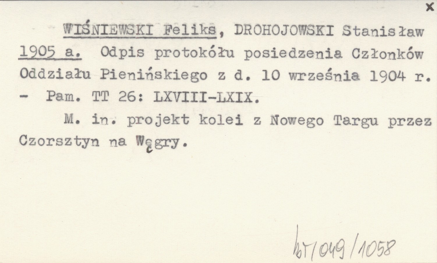 Pamiętnik Towarzystwa Tatrzańskiego, 26: LXVIII-LXIX. M.in. projekt kolei z Nowego Targu przez Czorsztyn na Węgry.
