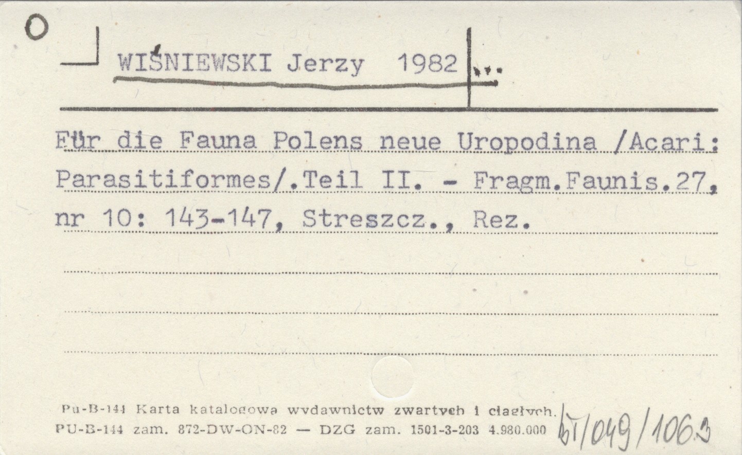 WIŚNIEWSKI Jerzy 1982... Für die Fauna Polens neue Uropodina (Acari: Parasitiformes). Teil II.