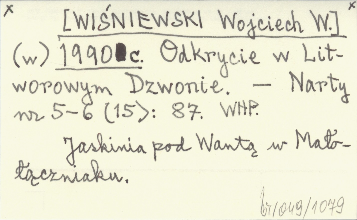 (w) [WIŚNIEWSKI Wojciech W.] 1990 c Odkrycie w Litworowym Dzwonie.