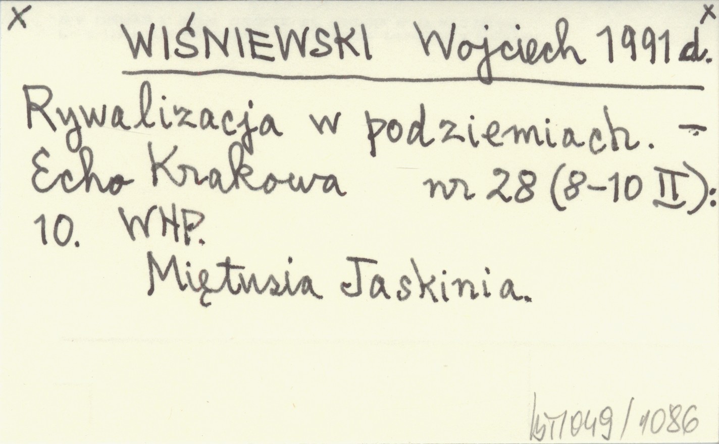 WIŚNIEWSKI Wojciech 1991 d Rywalizacja w podziemiach.