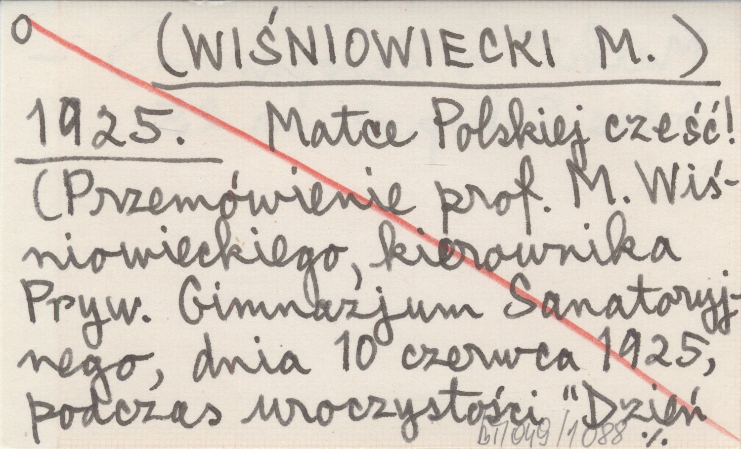 (WIŚNIOWIECKI M.) 1925 Matce Polskiej cześć! (Przemówienie prof. M. Wiśniowieckiego, kierownika Pryw. Gimnazjum Sanatoryjnego, dnia 10 czerwca 1925, podczas uroczystości "Dzień Matki" w Zakopanem).