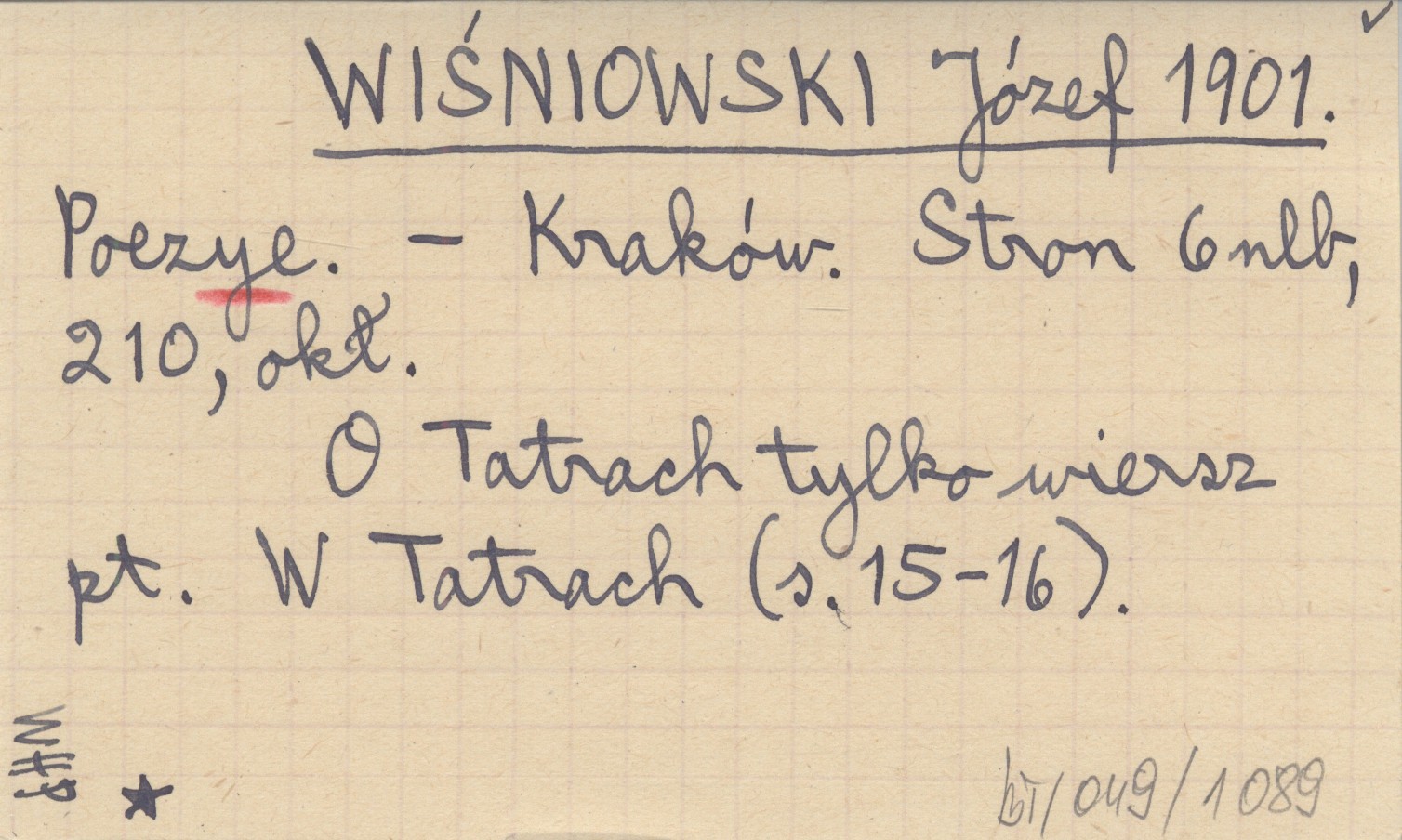 Kraków , [6] s., 210 s., okł. O Tatrach tylko wiersz pt. W Tatrach (s. 15-16).