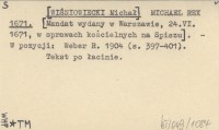 MICHAEL REX [WIŚNIOWIECKI Michał] 1671 [Mandat wydany w Warszawie, 24.VI.1671, w sprawach kościelnych na Spiszu].