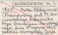 (WIŚNIOWIECKI M.) 1925 Matce Polskiej cześć! (Przemówienie prof. M. Wiśniowieckiego, kierownika Pryw. Gimnazjum Sanatoryjnego, dnia 10 czerwca 1925, podczas uroczystości "Dzień Matki" w Zakopanem).