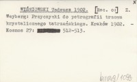 WIŚNIOWSKI Tadeusz 1902 Z. Weyberg: Przyczynki do petrografii trzonu krystalicznego tatrzańskiego. Kraków 1902.