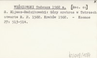 WIŚNIOWSKI Tadeusz 1902 a S. Eljasz-Radzikowski: Góry srebrne w Tatrzech otwarte R. P. 1502. Kraków 1902.